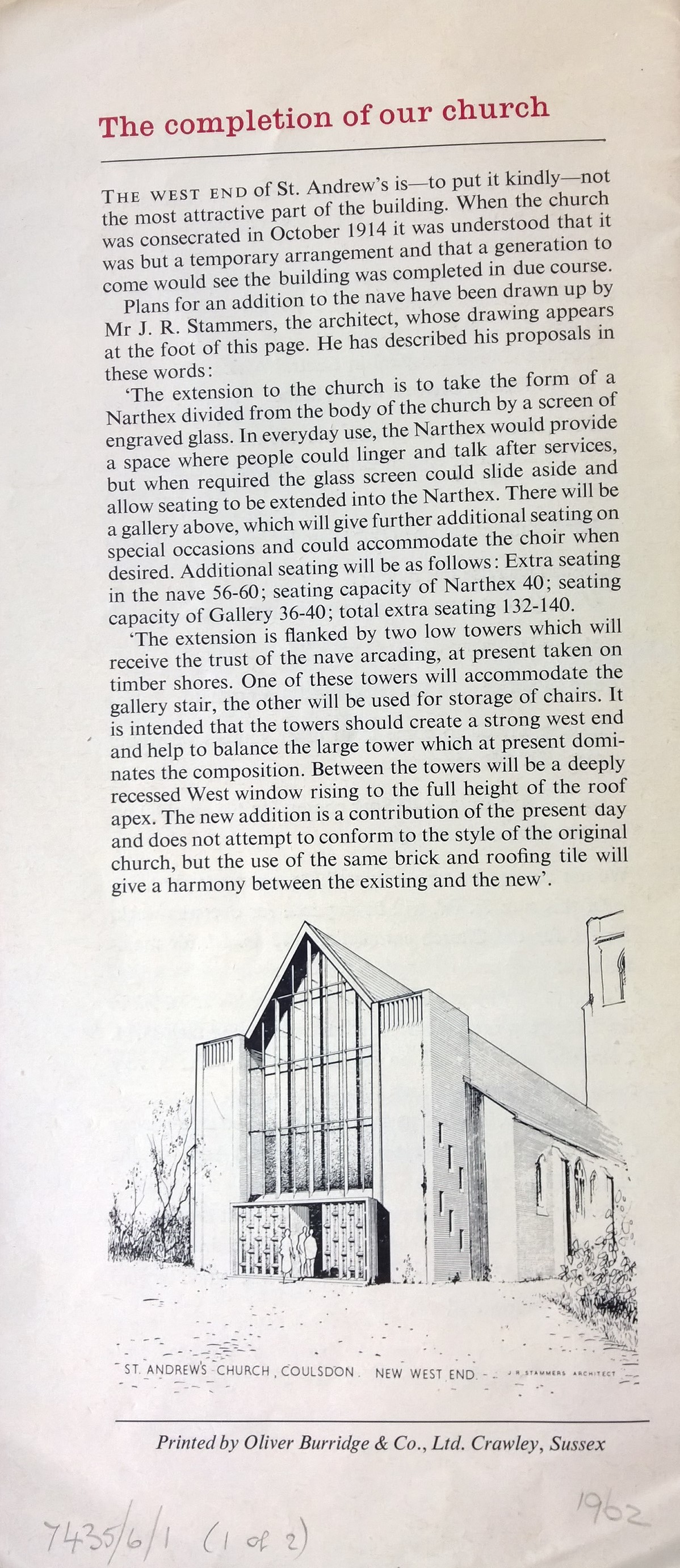 1962-64 Completion of West End of the Church