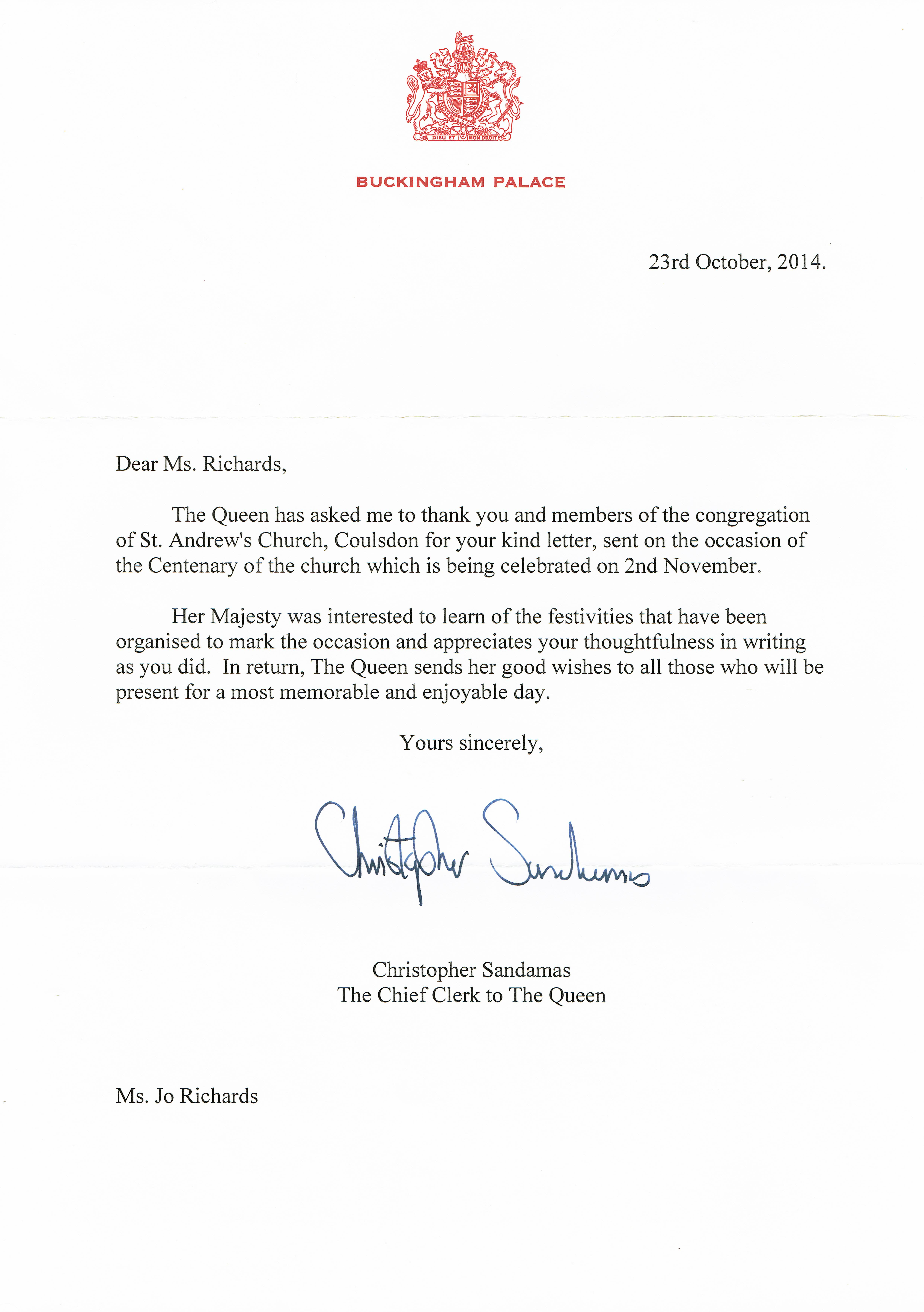 Rev. Fisher was previously Vicar at St Mary’s Sanderstead.